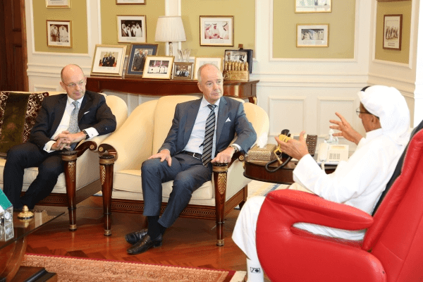 خلف أحمد الحبتور يناقش المجموعة الفندقية في الحبتور سيتي مع مايكل ويل، رئيس أوروبا والشرق الأوسط وأفريقيا في فنادق ومنتجعات ستاروود العالمية